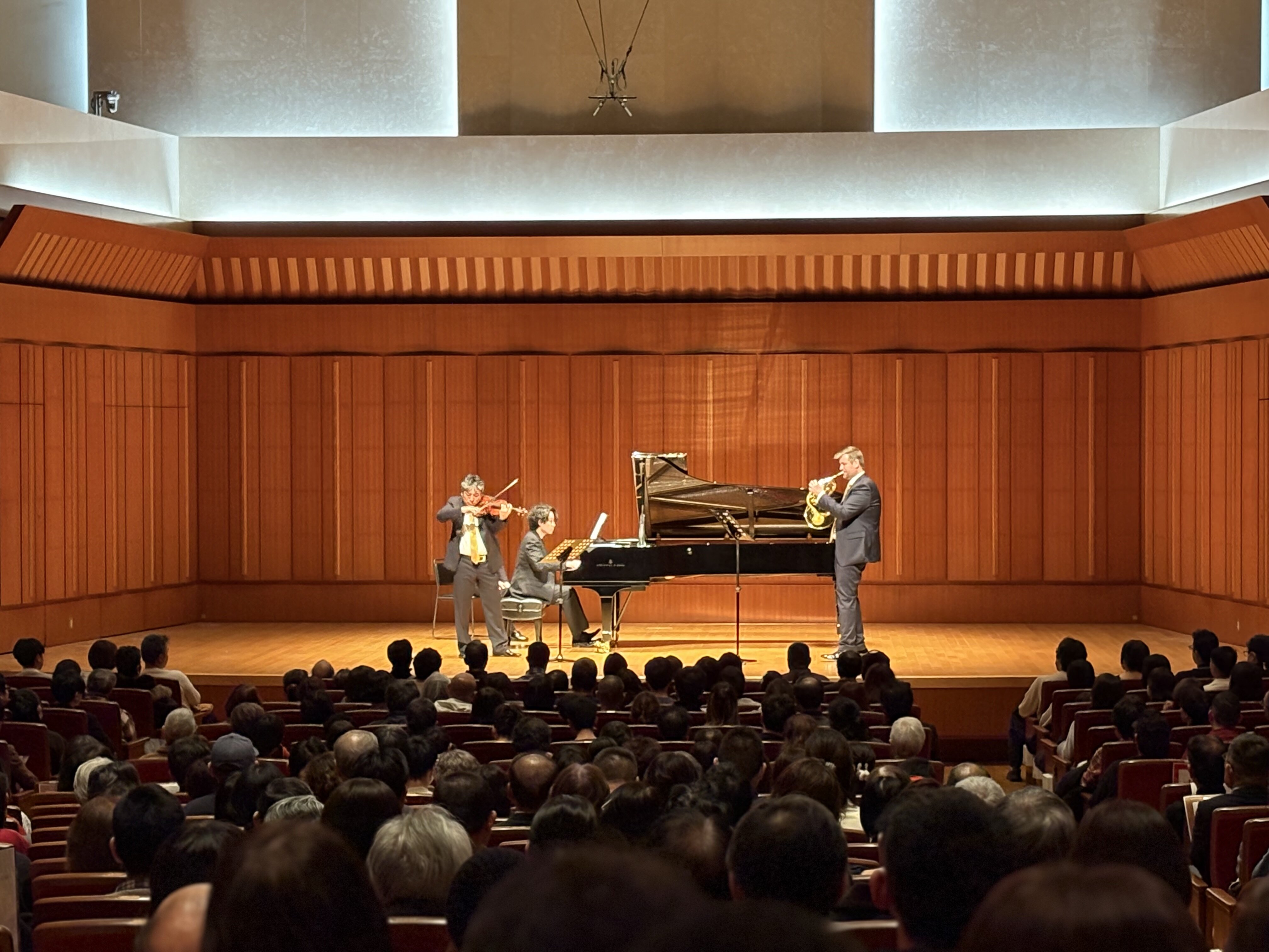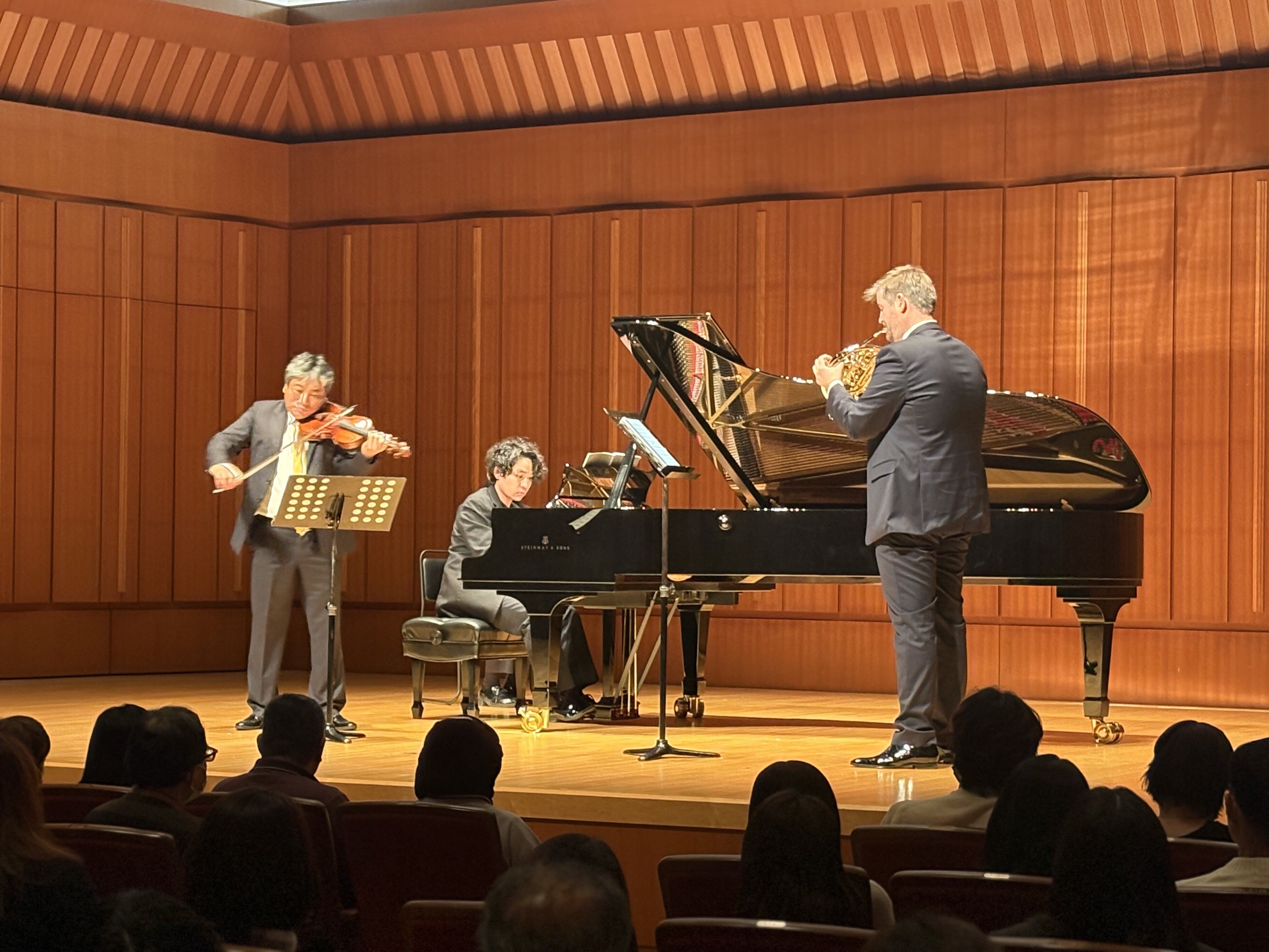 写真左から、(ヴァイオリン)太田雅音氏 (ピアノ)髙木竜馬氏 (ホルン)ゾルタン・マーチョイ氏